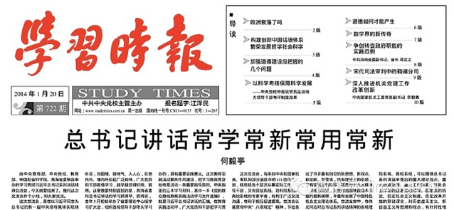 中共中央党校的《学习时报》,曾发表不少谈论改革的文章,予人印象不那么僵化。但一月二十日,该报头版以通栏大标题刊出《总书记讲话常学常新常用常新》,吓人一跳。
