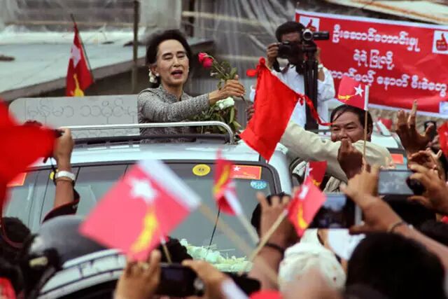 | 参加竞选演讲、为大选造势的昂山素季。图/ 新华社 |