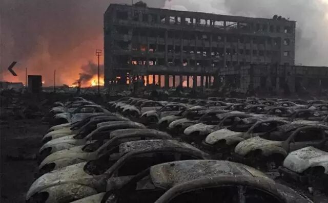 2015年8月12日晚天津塘沽大爆炸现场,附近的小区也被卷入其中。