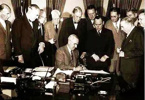▲1948年4月3日,杜鲁门签署马歇尔计划。