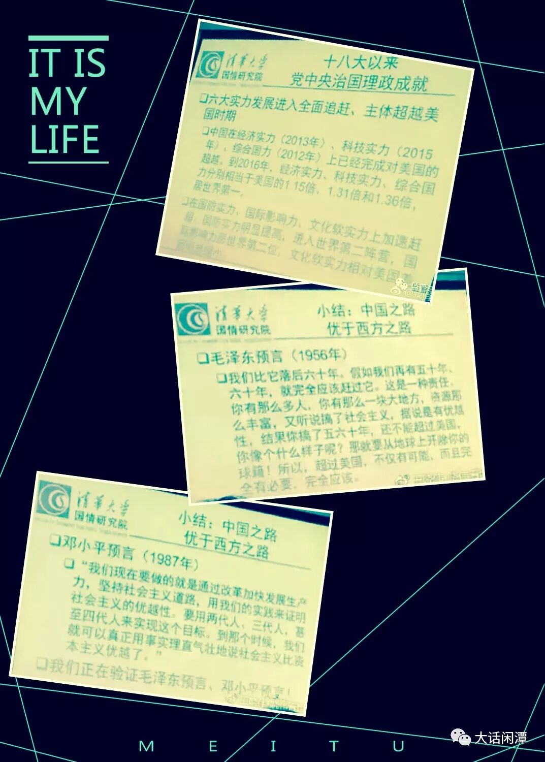 胡总和苗部长加在一起,能不能驳倒胡教授?胡教授可是用特殊材料做成的,他的金刚不败之身哪能这么容易被破掉。几十年来,他主导的清华大学国情研究院俨然是一个政治正确研究院,占有了巨大的国家资源——那是纳税人的钱。他们研究的中国国情,从毛泽东的强国之路到中国道路优越于西方之路,从一党执政最符合中国国情到中国政治制度高于美国,从中国模式是世界上最先进的模式到用中国方案来解决世界问题,全都是意识形态产品,哪是什么中国国情研究,应该叫中国神话研究!怪不得连胡锡进也看不下去,大凡有点正常心智的人,是编造不出这样的神话!