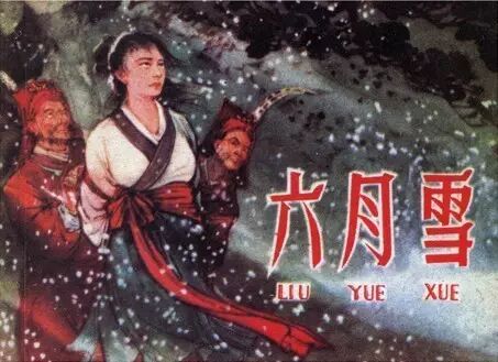 那贪官撇嘴摇头连说"愚昧,荒唐"。心想"这六月酷暑怎会下雪?人只见血往下流,我倒要看看血怎么往上飞的?哼……"于是命人拿来三尺白绫挂在高杆上。