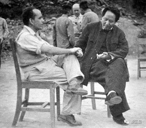 1964年1月18日,毛泽东会见爱泼斯坦(左二)、斯特朗(右一)、李敦白(左一)