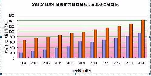 中国是全世界最大的钢铁大国,钢铁也是中国GDP重要支柱之一,2017年粗钢产量8.3170亿吨,占全球粗钢产量的49.1%,但原材料主要依靠进口。2017年,铁矿石进口量增至10.75亿吨,对外依存度逼近甚至超过90%。原材料对外依赖度近年来一直呈猛增趋势,2010年铁矿石对外依存度为63%。