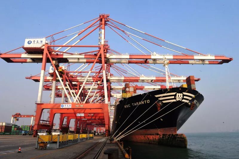 2017年12月8日,一艘外轮停泊在青岛港外贸集装箱码头。