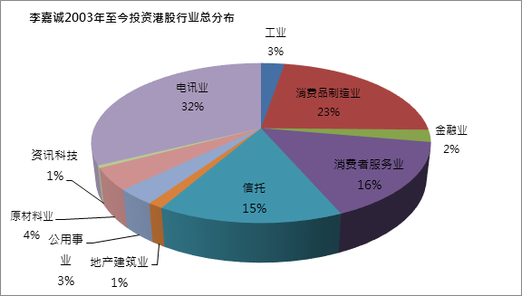 令人意外的是,如果不考虑信托中的地产部分,以开发房地产出名的李嘉诚,竟然地产股投资比例不到总投资的1%。