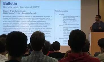学生们在Srinivasan和Pande指导下参与了各种比特币相关项目,研究范围涵盖比特币趋势和交易量、比特币协议分析,甚至比特币对希腊等国经济危机的影响。这一团队还在启蒙上投入诸多努力,教人们如何使用比特币并展示其重要性。