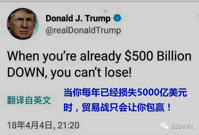4、忽视了特朗普这个企业家出身的总统,言必行、行必果,说一不二,雷厉风行的作风,仍然固守所谓美国政客做一套做一套的惯性思维。特朗普用一年多时间,兑现了其竞选时的全部承诺,这其中许多在一般人看来是离经叛道的颠覆性言行,但特朗普硬是一一兑现了。这说明特朗普这个人绝不能当一般的政治来对待。从马云忽悠他为美国创造100万个就业岗位开始,到四个对话机制上的空谈被美国拒绝继续下去,再到前不久中国主管经济的高层官员访美空手而归,这就注定了中美贸易磨擦甚至演变成一场史无前例的贸易战已经难以避免。