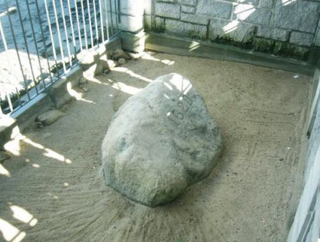 那条真实的"五月花"号早就烂完了。它是在 1620 年 11 月 11 日一个寒冷的日子抵达这里的,从船上摇摇晃晃走下 102 个清教徒移民,衣衫褴褛,形销骨立。他们原来的目的地是弗吉尼亚,风浪将他们吹到了这里,只能改变计划,落地为安,就在这里建立了第一个殖民地。他们当时是踏着一块海边岩石上岸的,那块岩石大约一米见方,经 337 年的海潮冲刷,还在原处,一半在海里,一半露出水面。美国人称它为"普利茅斯圣岩",在它露出水面的那一侧刻了" 1620 "四个阿拉伯数字,迹近神秘,几乎朝拜它为整个北美文明的发祥物。岸上有一个回廊,好让参观者在它的上方来回走动,以仔细端详这一伟大的"圣岩"。