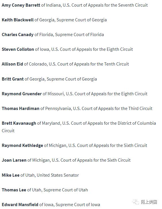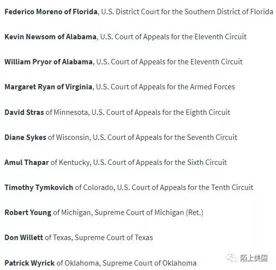 继任者提名旋即出炉,25位候选人中,虽然不太清楚他们的立场,但是从他们所在的地方来看,除了三位分别来自马里兰州、佛吉尼亚州和科罗拉多州,其他都来自保守州或者2016年大选支持川普的州。