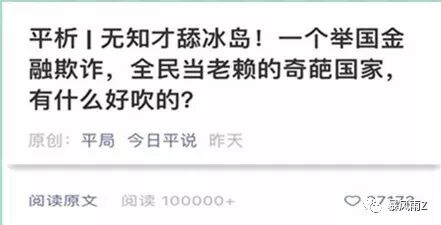 在文章开头,该作家便把段子手的调侃比作跪舔,然后立马使上中国游客带动冰岛GDP的荒诞论调。在赚足了民族虚荣心之后,立马单刀直入,揪住冰岛的破产历史,展开长篇大论,为的就是丑化冰岛,然后为自己的核心观点做铺垫。
