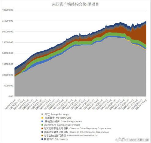 在外则牢牢绑定美元。在过去近20年里,中国通过加入WTO,搭上全球经济增长的快车,逐步积累了大量的美元储备,中国将这些美元储备以美国国债的方式存储。因为美元信用的扩张,中国货币当局才具备人民币信用扩张的条件和底气。一旦失去每年对美3500亿美元的贸易顺差,基础货币投放就失去了依附之锚。中国央行的资产负债表中,有60%是来自外汇占款,所以中国是被美元绑架最成功的国家。