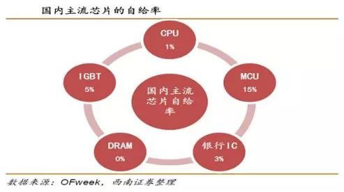 图3:国内主流芯片的自给率(来源:OFweek ,西南证券整理)