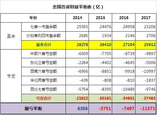 2017年年中,老蛮我发布了一篇《神奇的财政平衡术》,以各地的国地税收支数据扣减其公共财政收支数据,计算各地的财政盈亏情况。当时我的结论是:我大中国仅仅依靠6省1市(上海北京广东浙江江苏福建+深圳)养活全国。这个结论曾经轰动全国,引发巨大的社会反响。