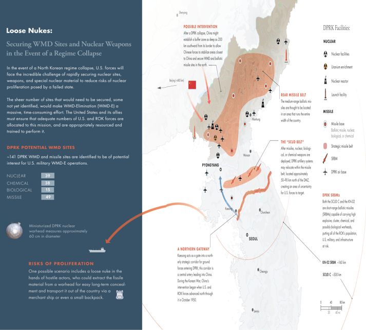 可以想象的是,美国可能将这样一个重要的使命留给其他国家,但我们推测,没有美国总统愿意承担这样的风险:让不安全的核武器将转移到恐怖分子,或其他可能用来对付美国本土的人手中。战争游戏也假设韩国将需要处理被朝鲜垮台后的一系列问题,并且几乎没有多余的能力进行大规模核查。