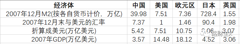 我特意千辛万苦寻找了2007年末这5大经济体对应的数据(见下表)。