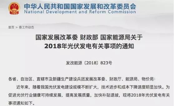 控制规模方面,暂不安排2018年普通光伏电站建设规模。在国家下发新文件前,需国家补贴的普通电站建设不得进行。