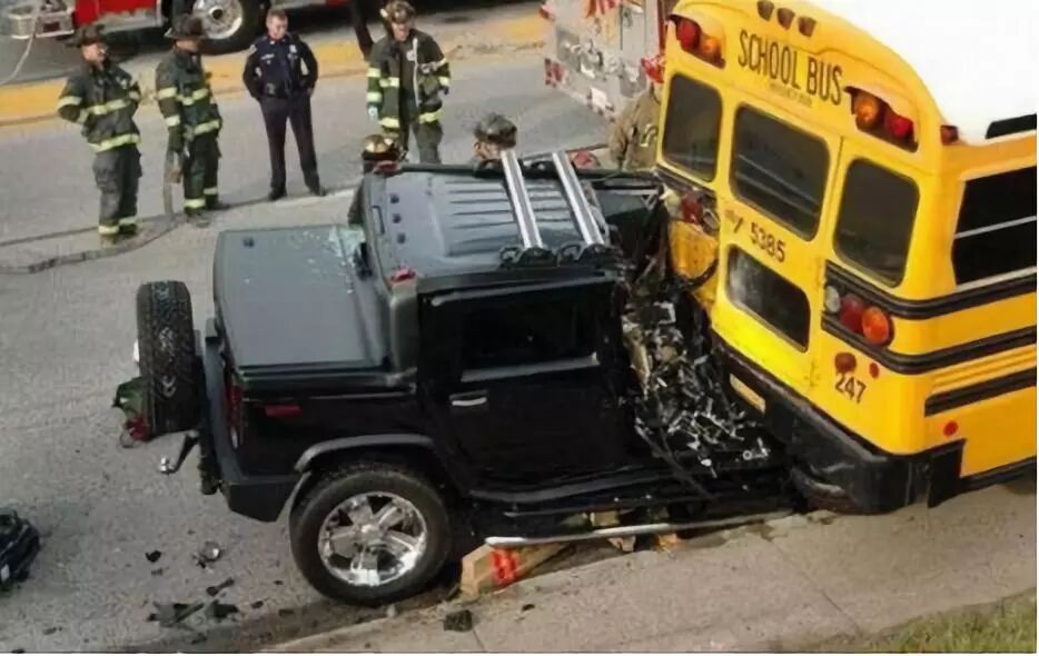 ▴ 当悍马撞上美国校车:车里可能是未来的总统或盖茨,因此安全标准最为苛刻
