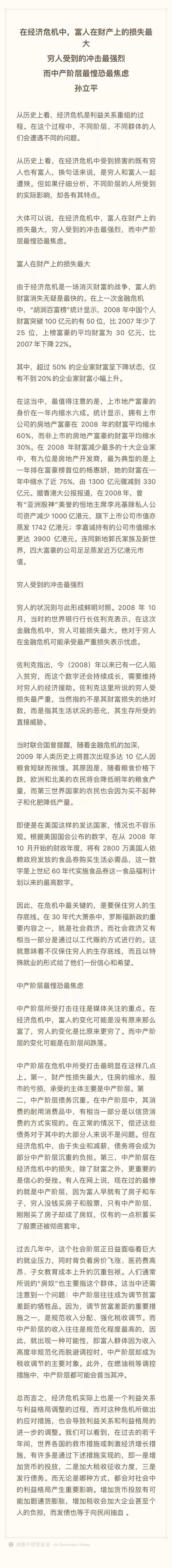 大体可以说,在经济危机中,富人在财产上的损失最大,穷人受到的冲击最强烈,而中产阶层最惶恐最焦虑。