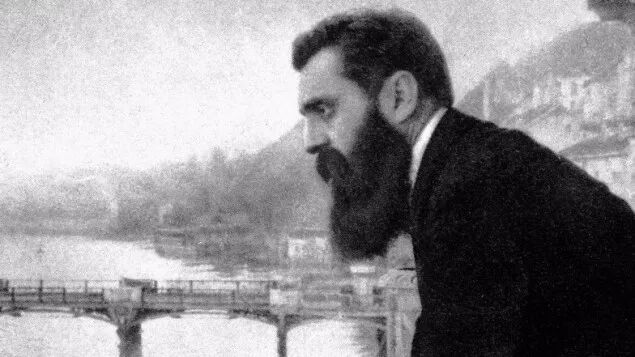 西奥多·赫茨尔是维也纳的文学批评家,据说他英俊非凡,"杏仁般的双眼上长着浓密忧郁的黑睫毛",从侧面看他就像"亚述人的皇帝"。他是被彻底同化的犹太人,穿着翼形领和双排扣的礼服,有三个孩子,但婚姻并不幸福。