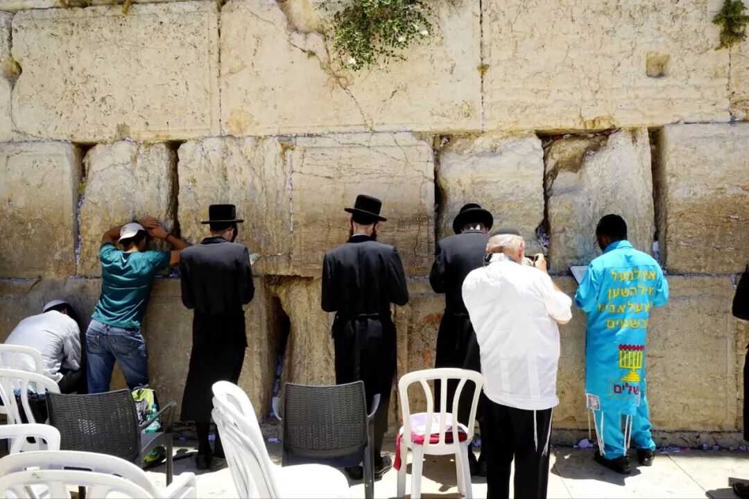 ▲在哭墙前祷告犹太教神职人员"拉比"