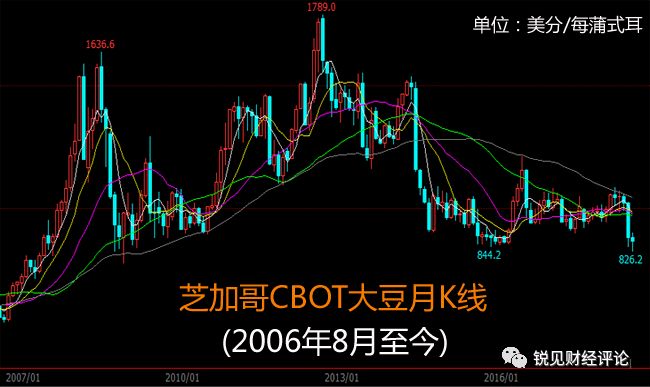 更进一步观察,美国大豆自2012年9月从最高价1789美分/蒲式耳跌到现在,正是中国大量从美国采购大豆之时,之所以全球大豆价格持续暴跌,主要是南美国家持续扩大转基因大豆的种植面积,打破了美国大豆的垄断。同时,中国早就未雨绸缪,对美国大豆的采购量多年来已经少于从南美采购的大豆数量,就由于运输成本差异等原因,美国大豆价格一直比南美大豆每吨便宜300元左右,中国还是坚持更多地从南美的巴西和阿根廷进口。换句话说,中美贸易战,无非使得南美大豆与美国大豆的差价每吨上涨了100元人民币而已。