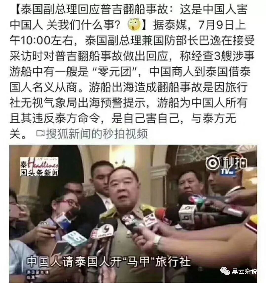 除了溶洞救援事件,同时发生在泰国的,是普吉翻船事故,已经造成四十多人遇难!有人责问泰国政府不作为,泰国副总理回应:这是中国人在害中国人,关我们什么事?