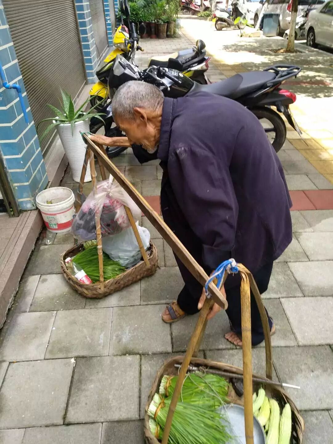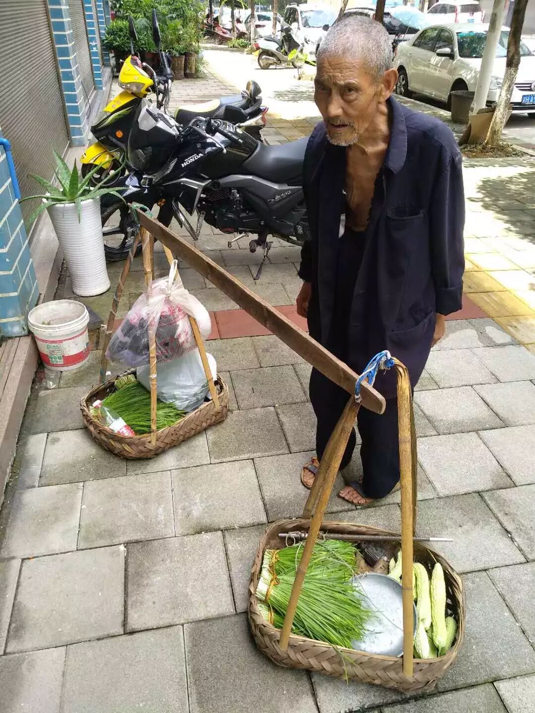 说话已然中气不足,大病一般,挑着自己种的菜,步履蹒跚由远及近地,沿着商户们的门面,小声地叫卖着过来。