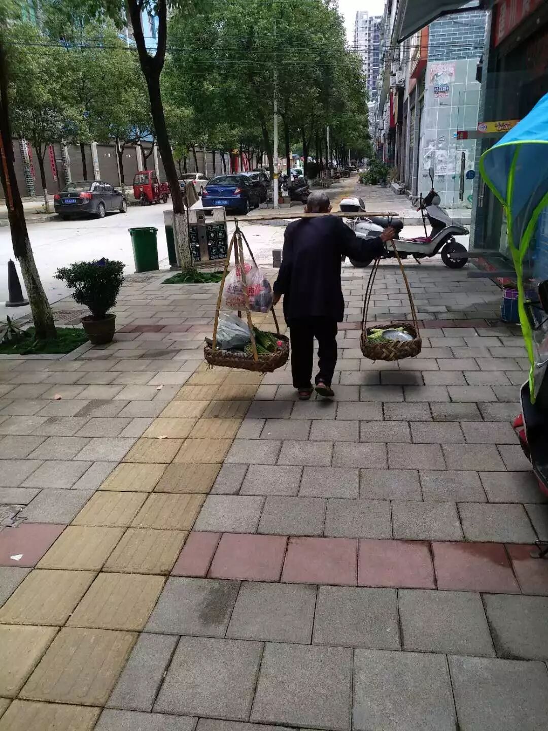 然后老人,摇摇晃晃地挑着菜,步履蹒跚地就走远了。