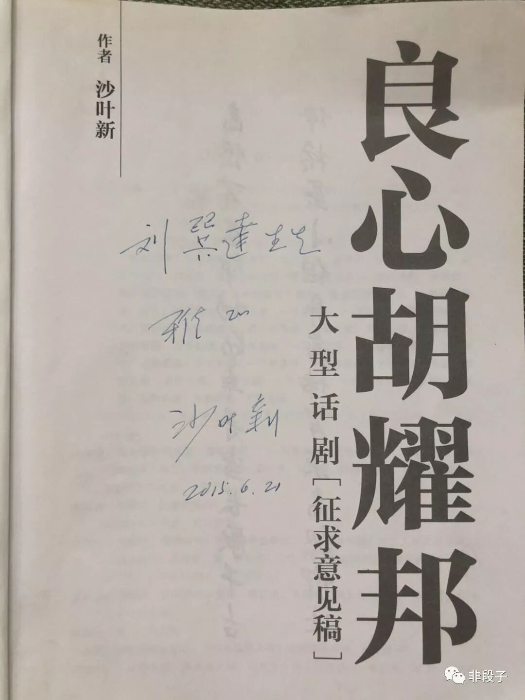 我与亦师亦友的沙公,深度接触并不特别频密,但是我把他引为精神知己。作为校友和"华师大作家群"的一员,我曾经和他一起签名售书,拜读他的各种新作,偶尔欢聚于饭局。我尤其佩服他晚年时的洒脱,他早就与名缰利锁挥别,人生态度淡然潇洒,不再为无谓之事耽误时间,一心撰写自己的良心之作。不久前在香港排演的《良心胡耀邦》,看似在写胡耀邦的良心,其实何曾不是在表达他自己的心声?
