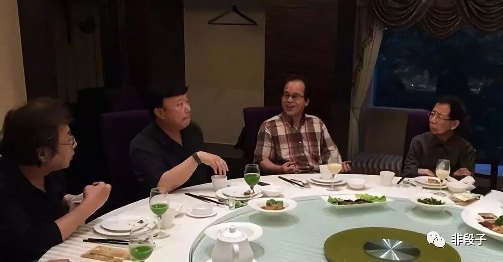 笔者与沙叶新(右一)文化学者朱大可(左二)剧作家赵耀民(左一)餐叙
