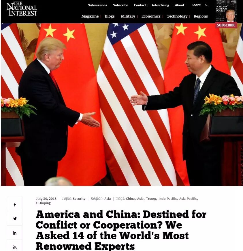 美国《国家利益》给全球14位知名专家提了一个问题"鉴于美国和中国之间的紧张局势日益加剧,您认为双方关系将如何发展? "这里是他们的回答。
