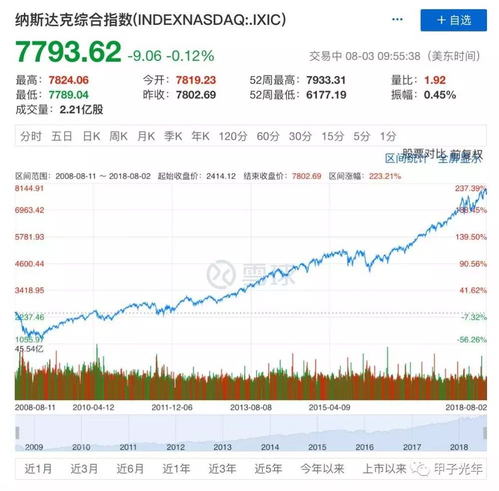 2008年8月至今,纳斯达克综合指数走势