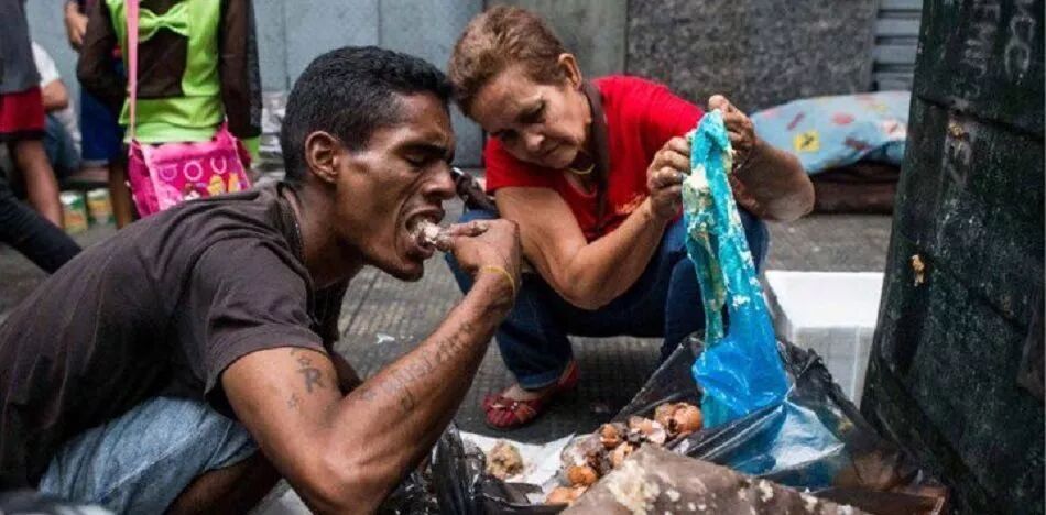 食品匮乏,超市的货架总是空空荡荡。80%的人一天勉强只能吃上一顿饭,委内瑞拉人平均体重2017年下降了11公斤,2016年下降了6公斤。饥饿的市民甚至不得不去捡拾垃圾。
