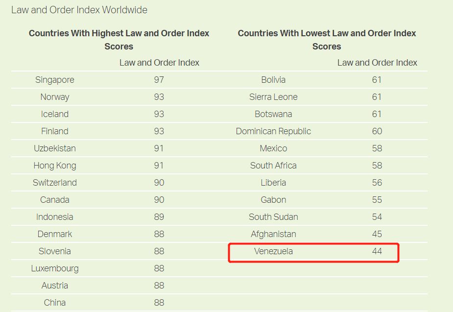 Gallup已经连续2年把委内瑞拉列为世界上最危险的国家,2017年42%的委内瑞拉人被偷或者被抢过,25%的人遭到过暴力袭击,只有17%的人敢走夜路回家……