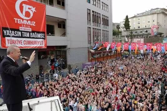 在美国发动对土耳其的制裁后,土耳其各大城市的广场上挤满了埃尔多安的支持者。因为,这不是经济问题,而是国家尊严问题!所以,人们挥舞着土耳其国旗,疯狂地喊着支持埃尔多安,并向美国宣战。于是,一场"人民爱总统,总统爱人民"的古老大戏又上演了,连八十岁的老头都哭喊着叫埃尔多安父亲……