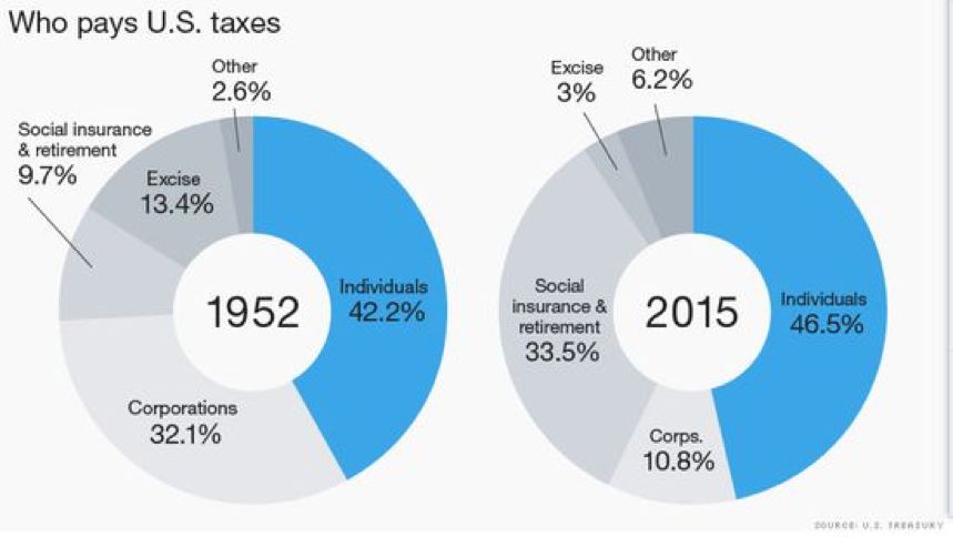 2016年后美元卷土重来,进入新一轮加息周期。为了给美元加息创造更大的空间,川普一上台就给企业大规模减税。很多人不理解为什么川普这次是给企业而不是个人减税?一个重要原因,就是在直接税为主的体制下,美国政府的现金流(税收)大部分是家庭和个人贡献的,而股票市场价格则是由企业现金流(利润)决定的。给企业减税可以以最少的代价给资本市场输血。