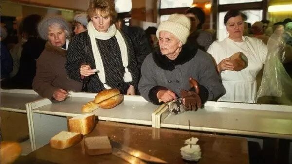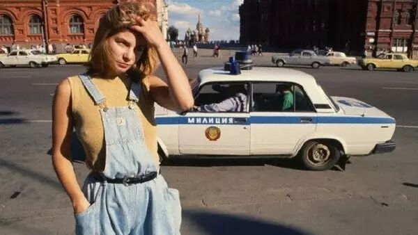 ▲1991年12月25日,一位妇女把包放在苏联镰刀和国旗塑像上