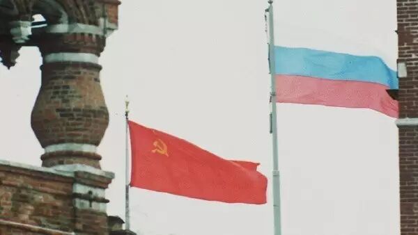 二十五日圣诞节夜,十九时二十五分,戈尔巴乔夫在电视讲话中宣布辞职。十九时三十二分,克里姆林宫屋顶旗杆上,那面为几代苏联人熟睹的镰刀锤子旗开始徐徐下落、下落……十九时四十五分,一面三色的俄罗斯联邦国旗取而代之,升上了克里姆林宫上空。