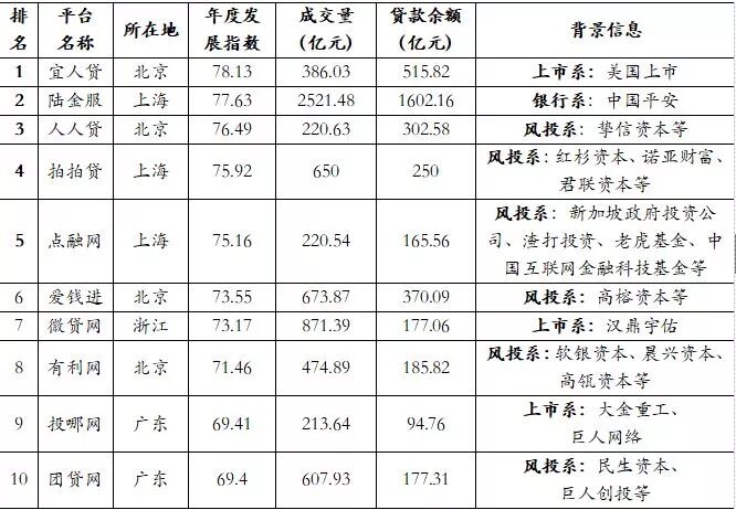 表1  2017年排名前十的P2P平台统计,无一是单纯的民营系