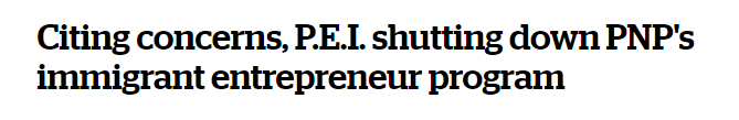 就在刚刚几个小时前,加拿大爱德华王子岛省(P.E.I)政府宣布:关闭PEI PNP企业家移民计划!