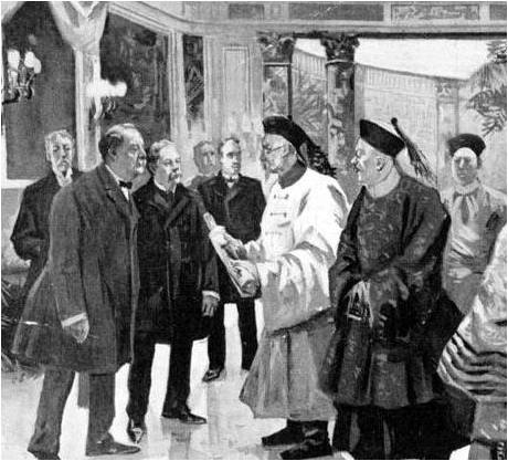 1896年,趁中国在甲午战争中惨败,俄国以"共同防御日本"为借口,诱迫清政府签订了《御敌互相援助条约》,一般就称之为《中俄密约》。