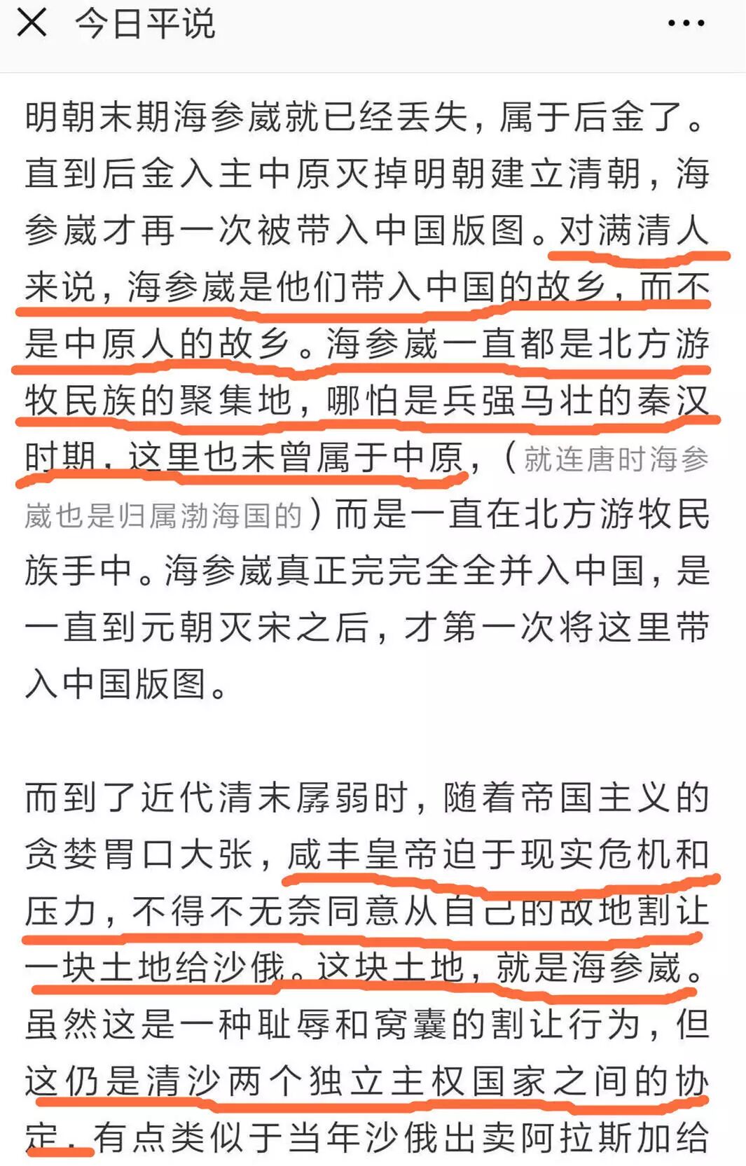 他接着说:明朝末期海参崴就已经丢失,属于后金了。直到后金入主中原灭掉明朝建立清朝,海参崴才再一次被带入中国版图。对满清人来说,海参崴是他们带入中国的故乡,而不是中原人的故乡。