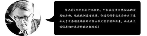 我们在这个问题上再往前走,有一个很重的历史包袱要解决:"李约瑟之谜"。中国很多领域都曾经领先,为什么到了科学革命的门口最后一脚不踢?进去了就是科学革命,就是文艺复兴。他最后有一个猜测,中国搞科举,所有聪明头脑都在猜皇帝会出什么题目,标准答案是什么,写一篇讨巧的文章去做官,对自然界有意思的东西就没有倾注这么大的注意。这是我们的历史包袱。