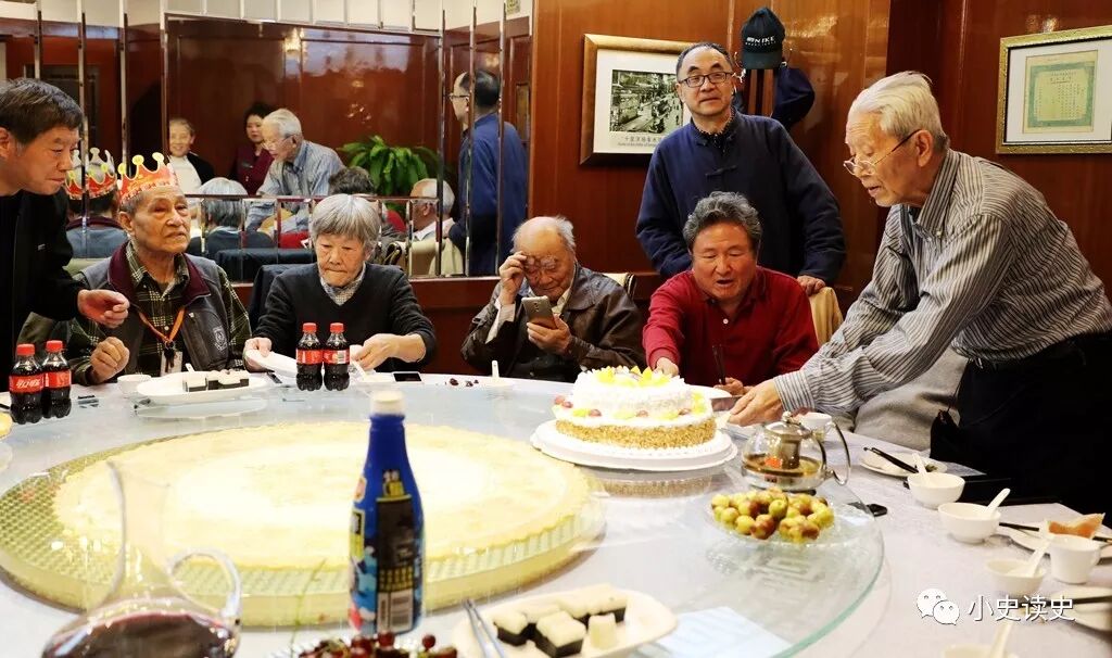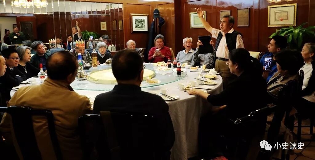 (连续六年为鲍老组织生日宴会的老黄端着咖啡祝鲍老生日快乐)