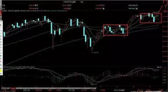 稍微懂点技术分析的童鞋看到我画的两个箭头就知道啥意思了。不过由于同花顺这个垃圾看不到美股指数的成交量,所以无法判断成交量是否也同时背离了——我认为应该是也背离了。