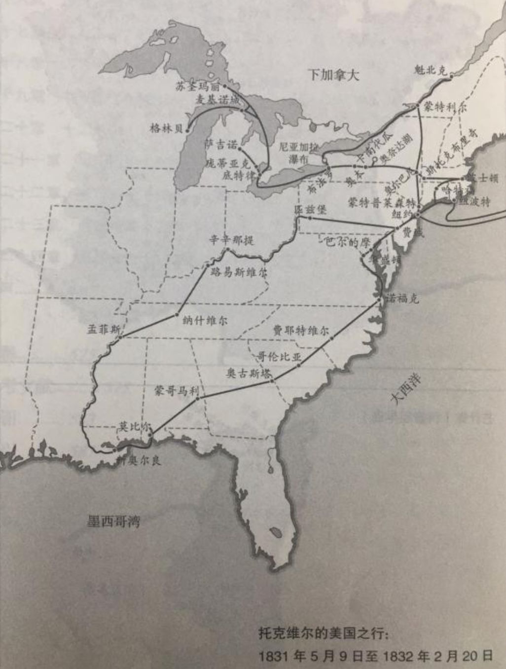 1831年,为了寻找"有益于人类的政治",26岁的托克维尔赴美国考察。他在这里发现了法国丧失已久的贵族气质:公民精神。他高度赞扬美国的有限政府,以及"以自然、法治和教会为依托的民主"。他敏锐地察觉到,这种"日渐蔓延的平等精神",必将对欧亚大陆的等级特权制度造成巨大冲击。