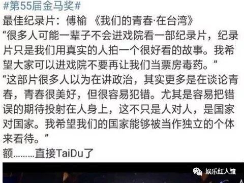 网曝傅榆在金马奖现场发表的言论