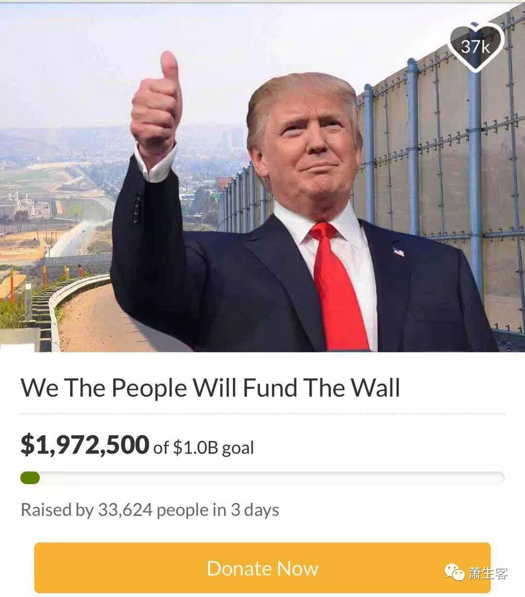 布莱恩在12月16日创建了GoFundMe帐户,名为''我们人民将资助建隔离墙"。截止这篇文章发布时,在三天内已经筹集到接近200万美元,10亿美元是这次捐资目标。