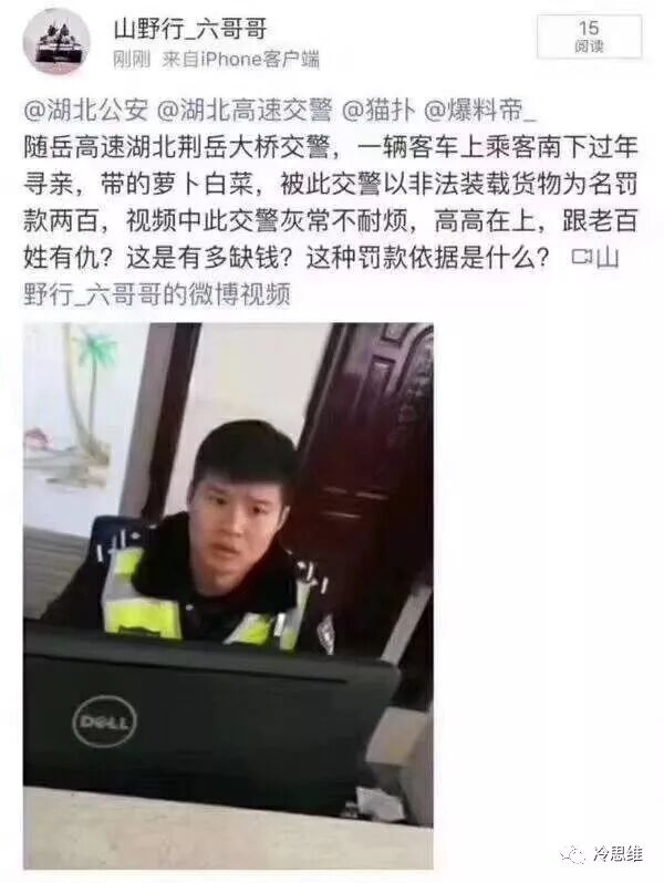 昨天,网上一则超载罚款的新闻刷爆了草民们脆弱的神经,眼珠子惊掉了一地。1月24日,湖北一大巴车因有乘客带了白菜萝卜大葱被荆岳大桥值班交警查处,并被罚款200元。网上传开后,27日凌晨,湖北高速交警 就此事发布警情通报:依法撤销处罚决定、暂停相关民警执法工作并开展调查、责成监利大队大队长向当事人赔礼道歉。